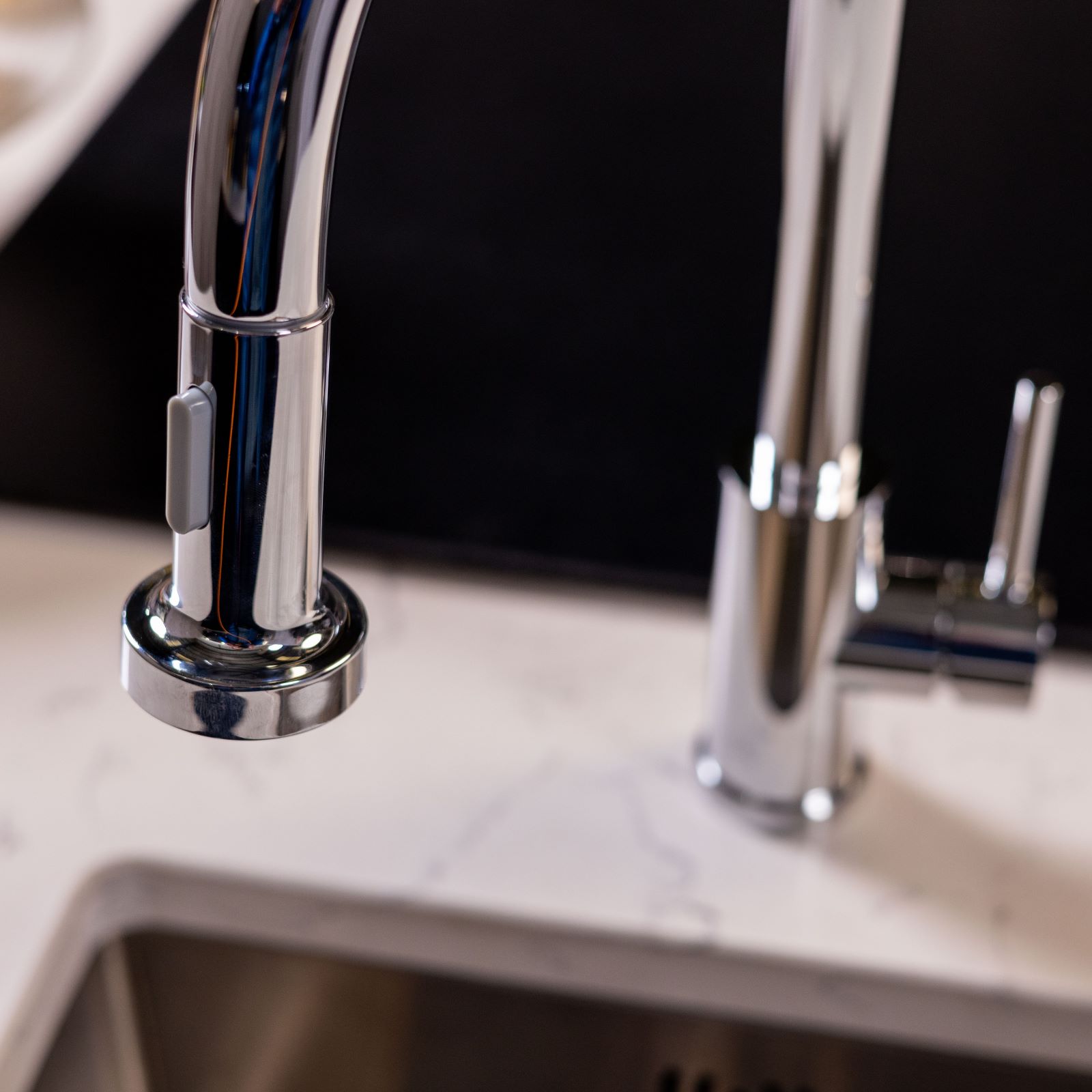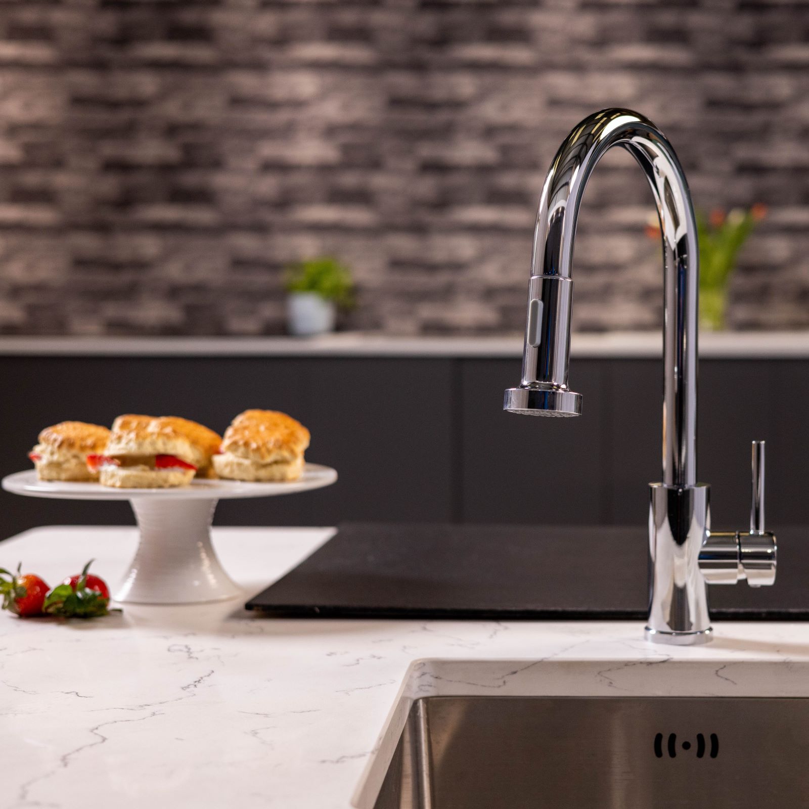 Transform your kitchen with the flöde Runda. Crafted with functionality in focus, its retractable nozzle enables easy & simple use.