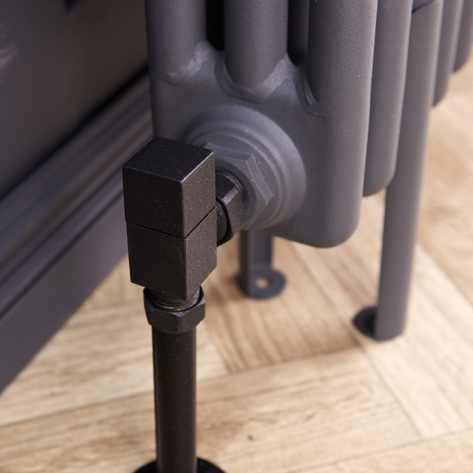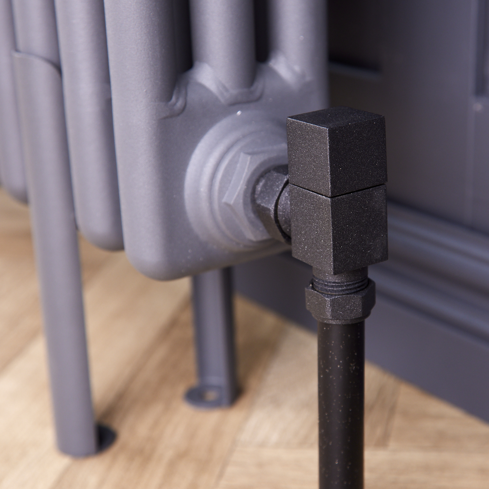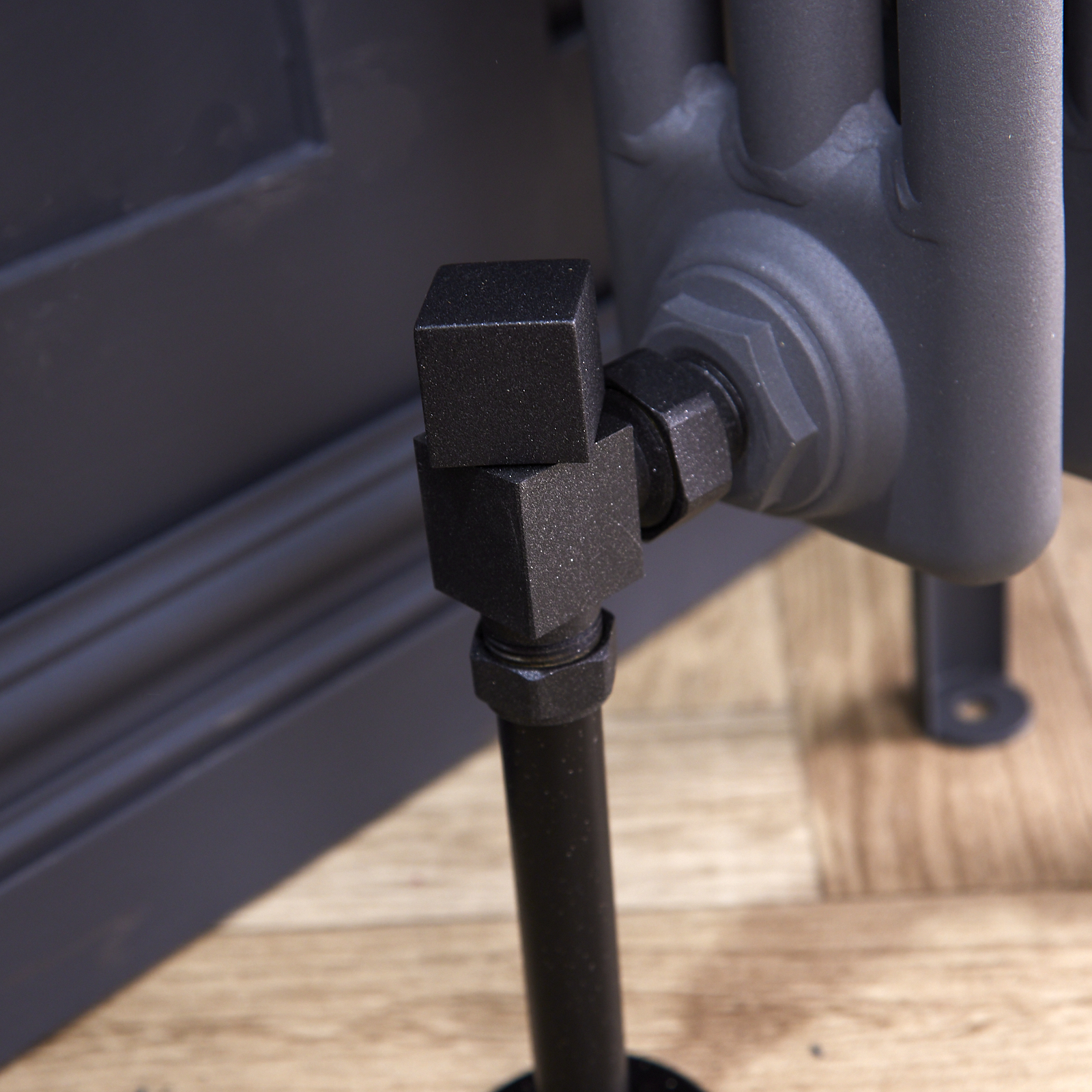 Their angled design also allows for a clean, clutter-free look by neatly concealing pipework within your wall. Crafted from premium solid brass, these valves offer outstanding durability and corrosion resistance, ensuring long-lasting performance. Finished in Anthracite, they add a sophisticated, high-shine effect to your radiator.