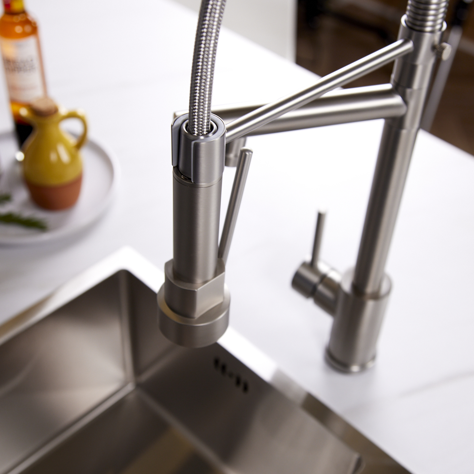 • Horizontal swivel spout with angled spray (vertical option shown)