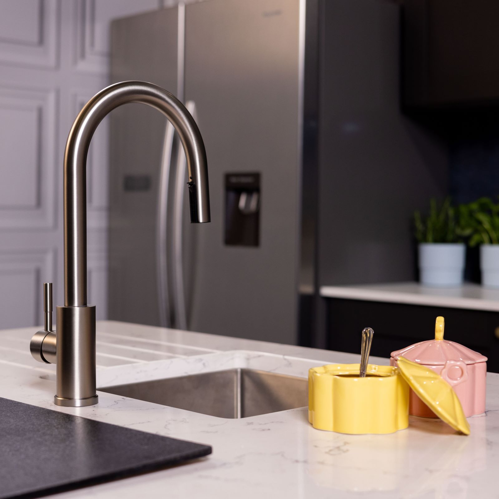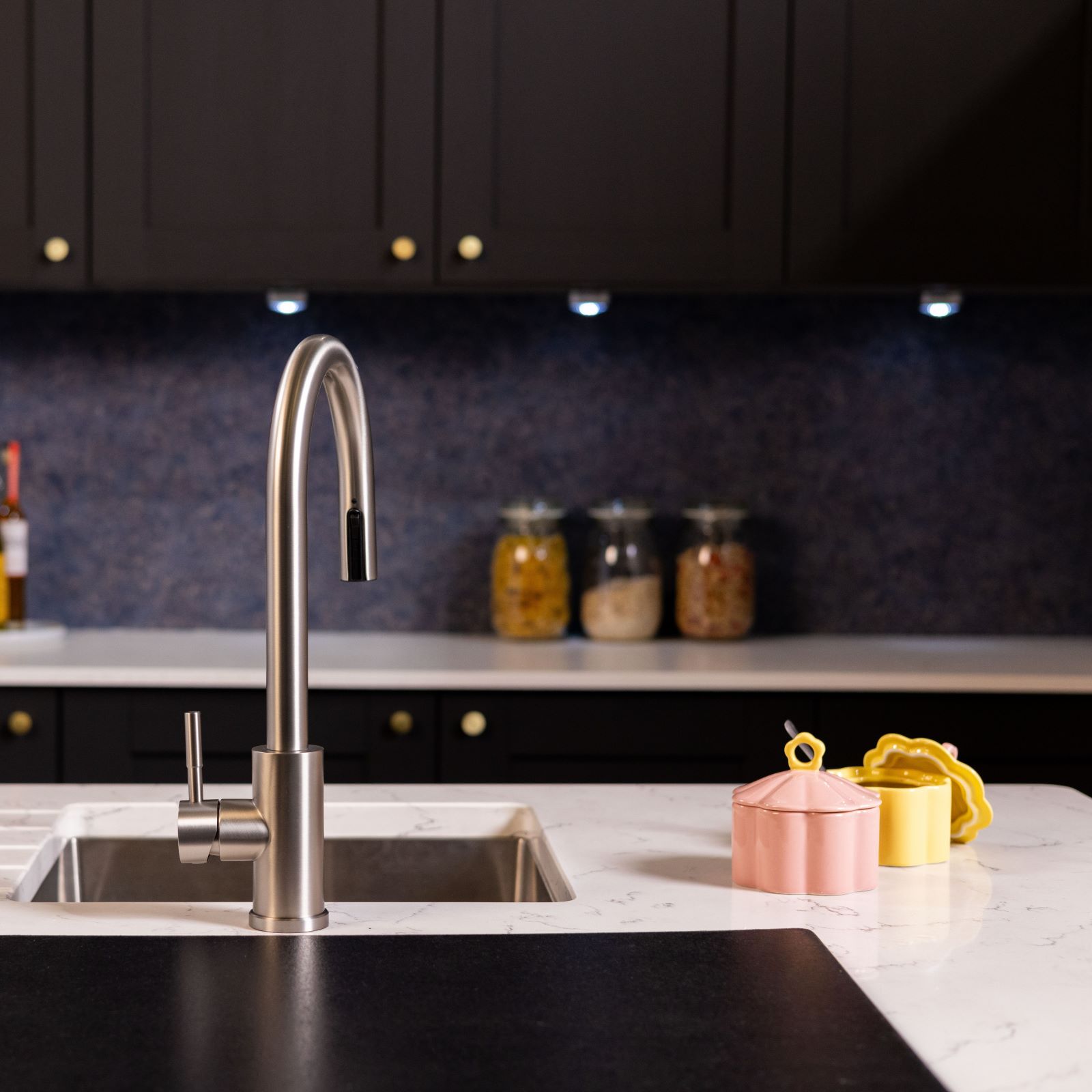 The Flode Dölja pull out mixer tap will add style to your kitchen. Featuring a dual function spray from a head that is concealed when not in use, the Dölja will help transform your kitchen.