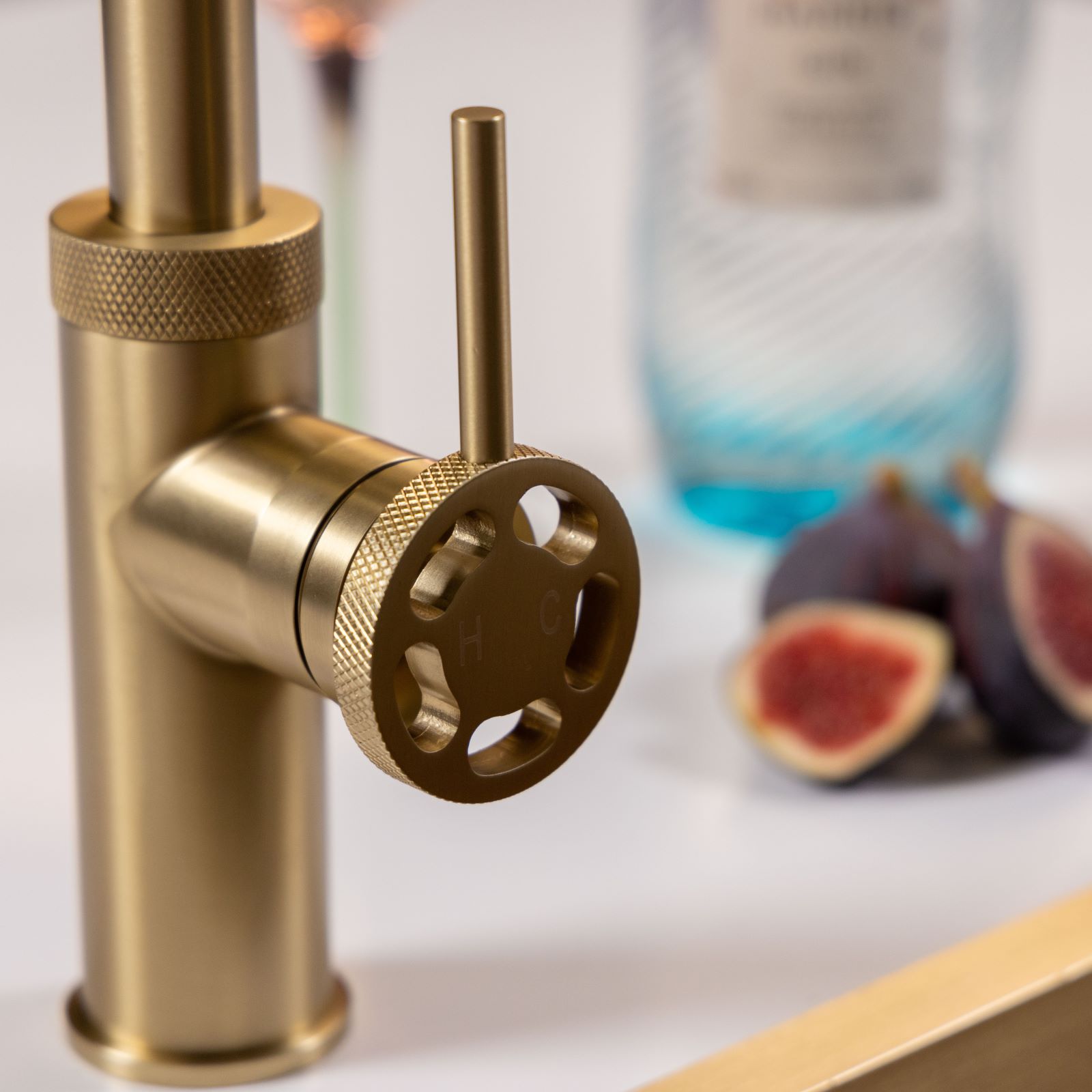 The Flode Hjul Industrial Style Kitchen Tap showcases a sleek and modern design that suits any kitchen setting.