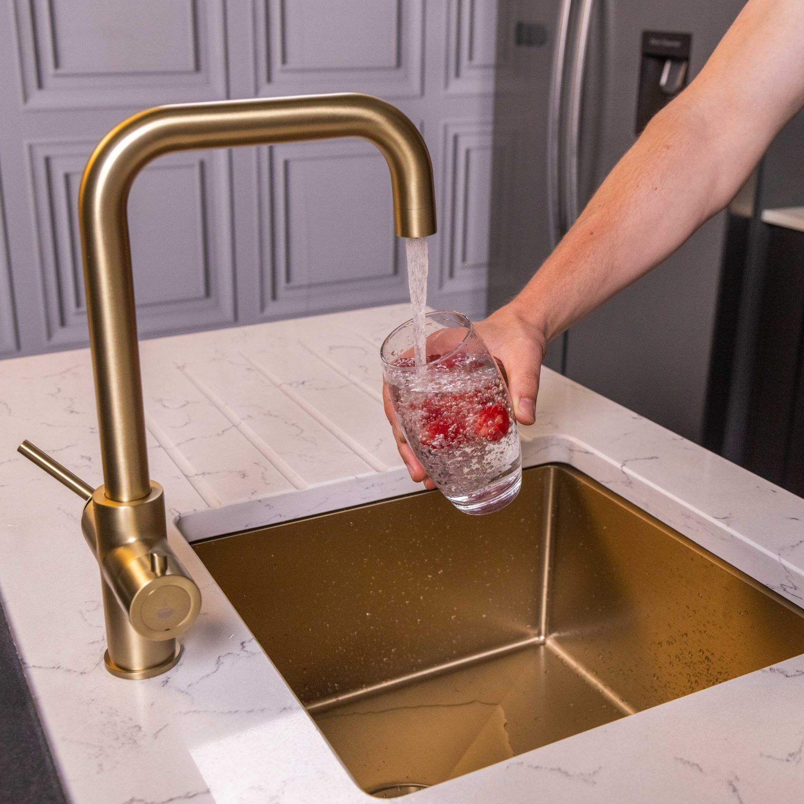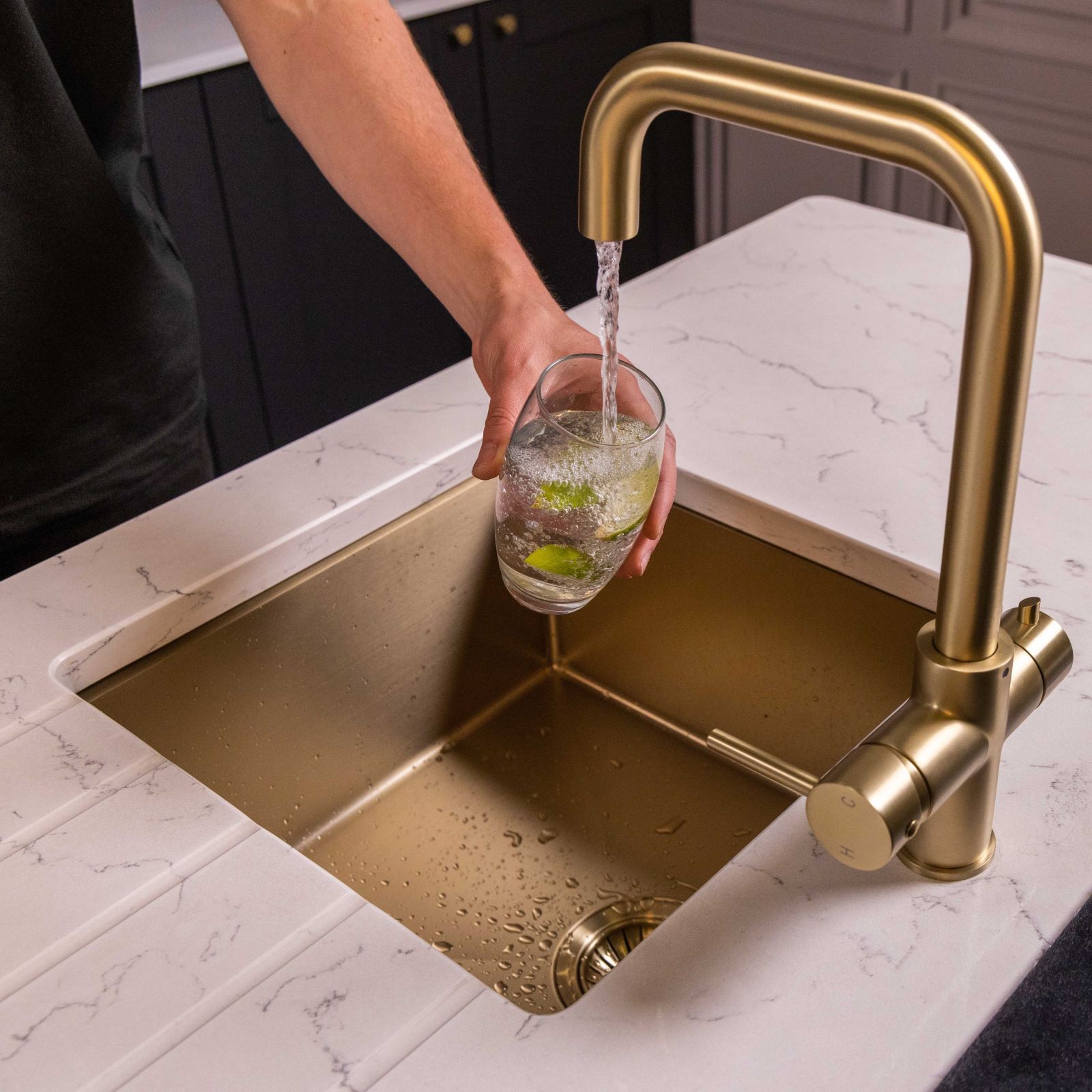 flöde Kyld 4 in 1 Instant Boiling & Cold Water Tap with Filtered Chilled Water | Brushed Brass Finish