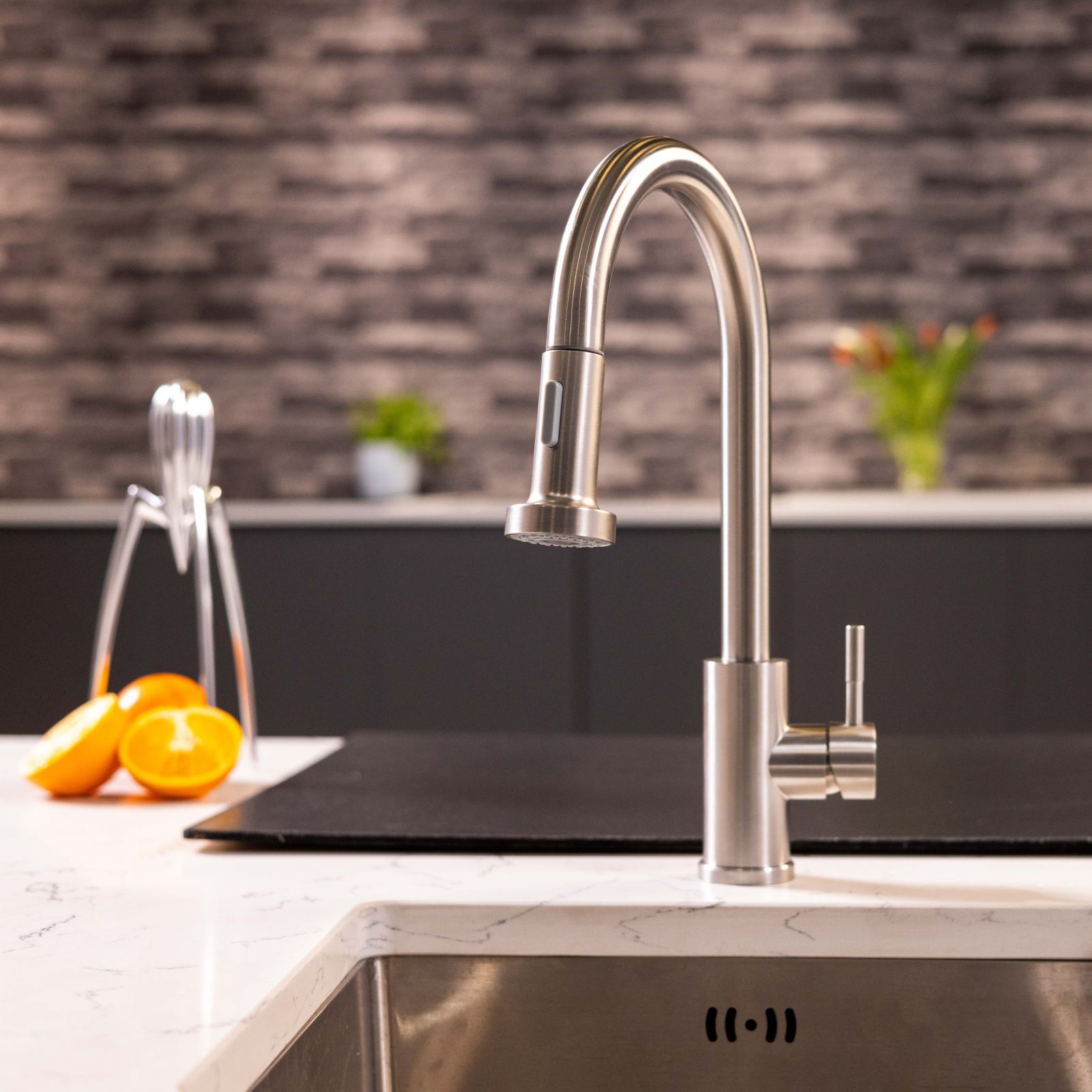 Transform your kitchen with the flöde Runda. Crafted with functionality in focus, its retractable nozzle enables easy & simple use.