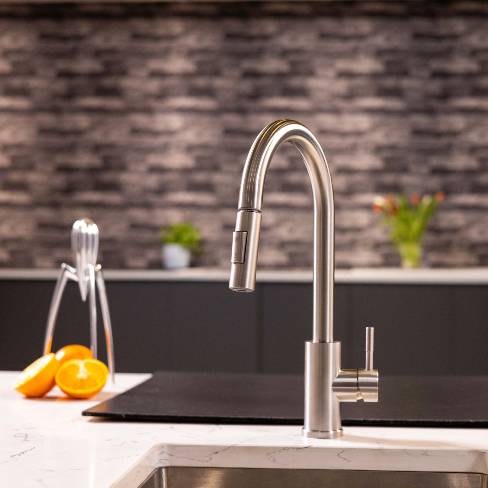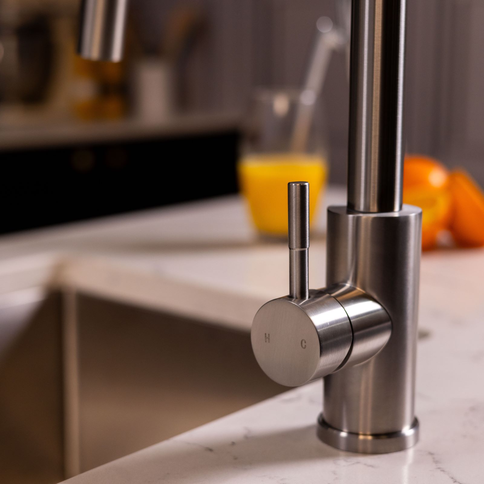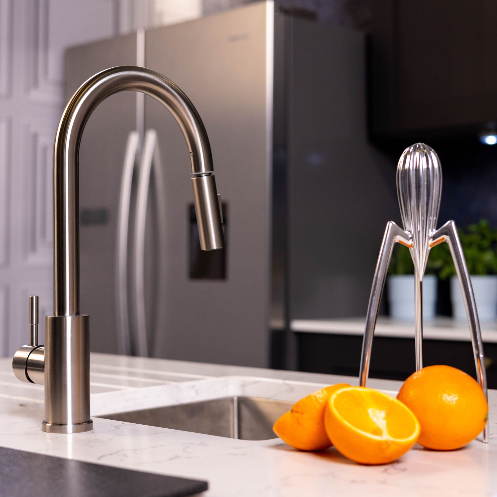 Transform your kitchen with the flöde Runda. Crafted with functionality in focus, its retractable nozzle enables easy & simple use.