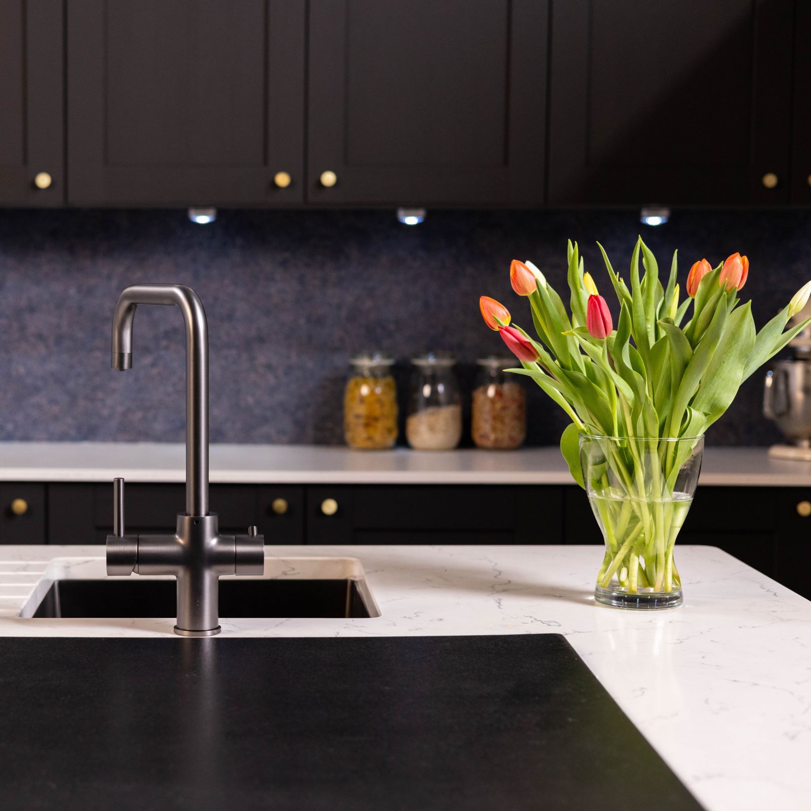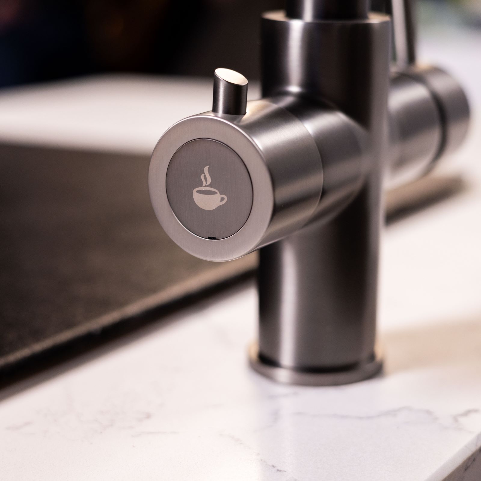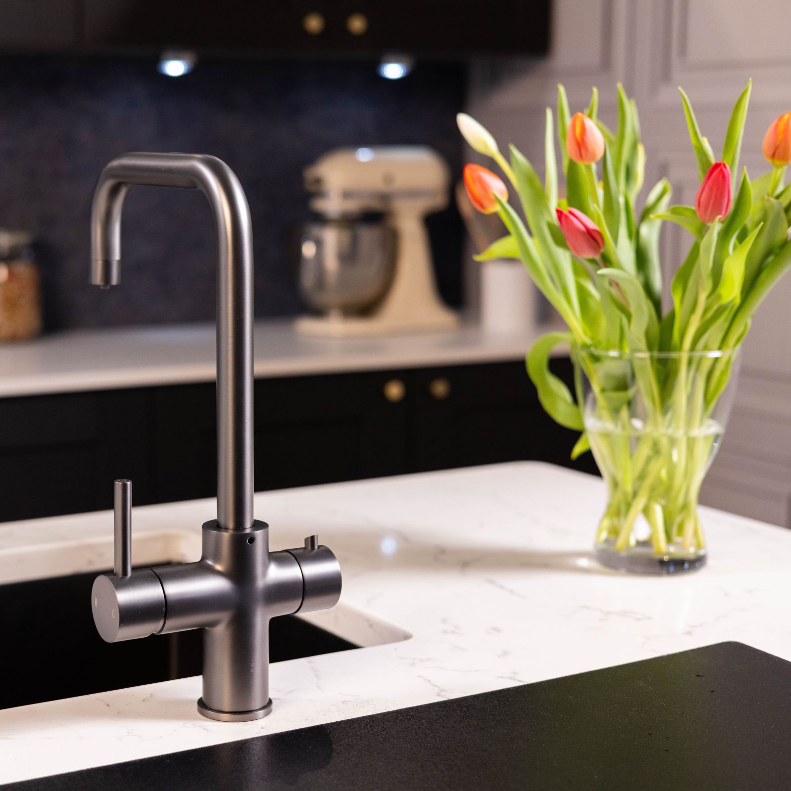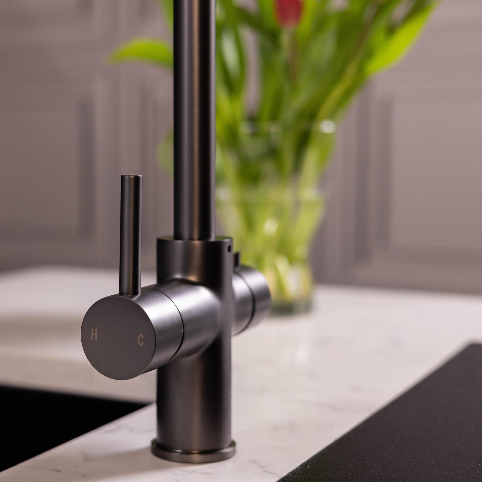 Introducing the flöde tre, a Gun Metal 3-in-1 Boiling Water Tap from flöde. With this innovative tap installed in your kitchen, you’ll have immediate access to 98°C boiling water in addition to the regular hot and cold water. Manufactured from top-notch brass, the taps are coated with a high-quality PVD to render the desired colour/finish of your boiling water tap.