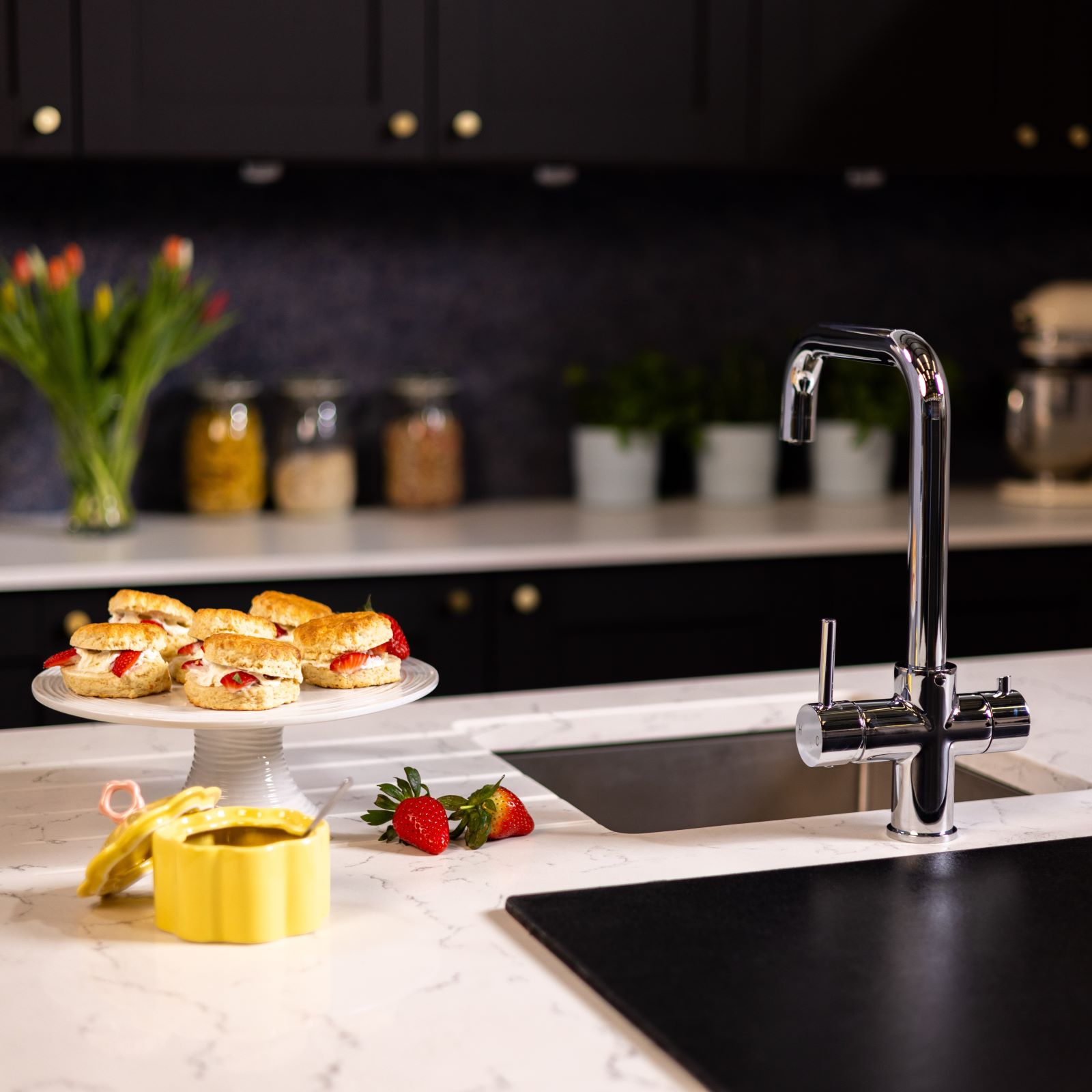 Introducing our latest innovation, the enhanced flöde vier Instant Hot Water Tap. With its advanced features and sleek design, it’s the perfect addition to your modern kitchen.
