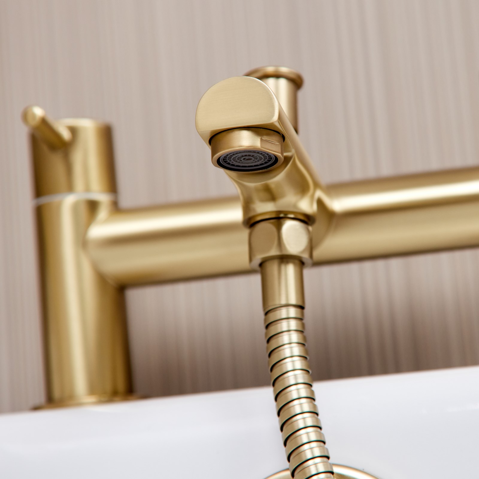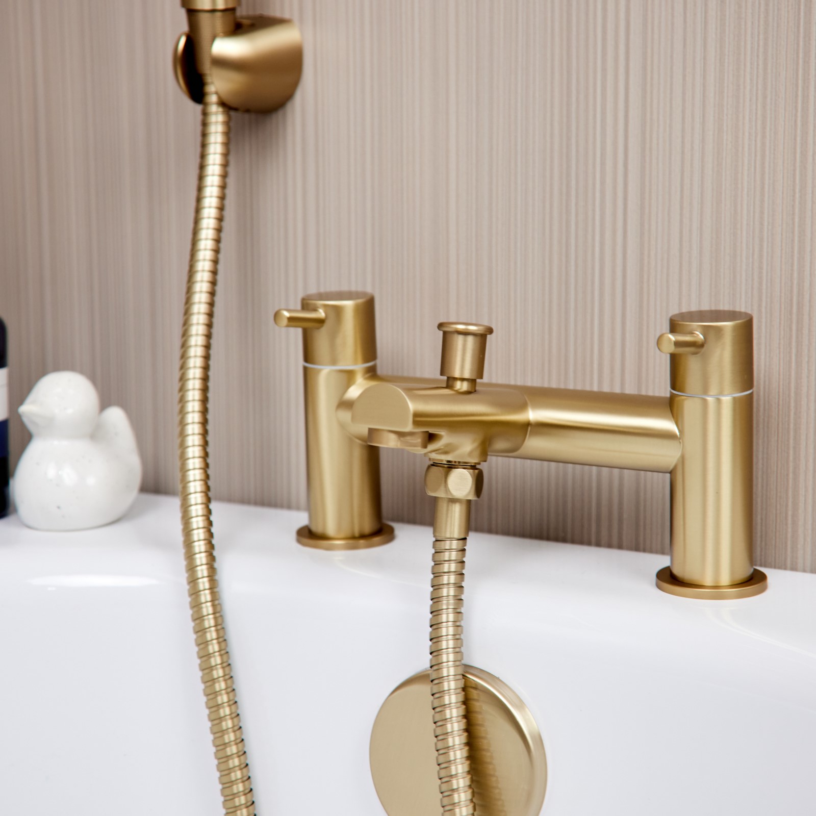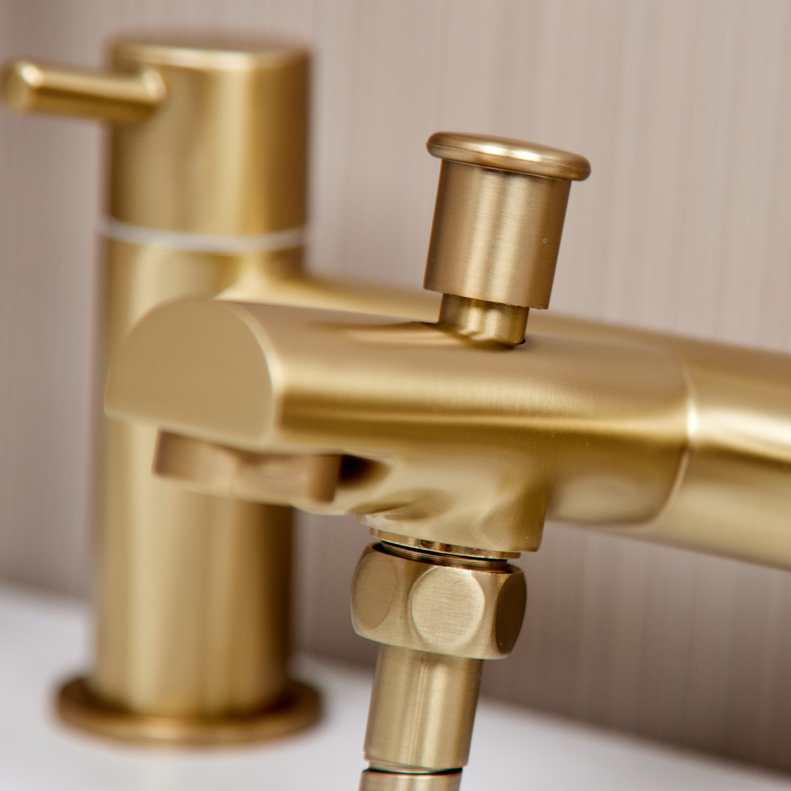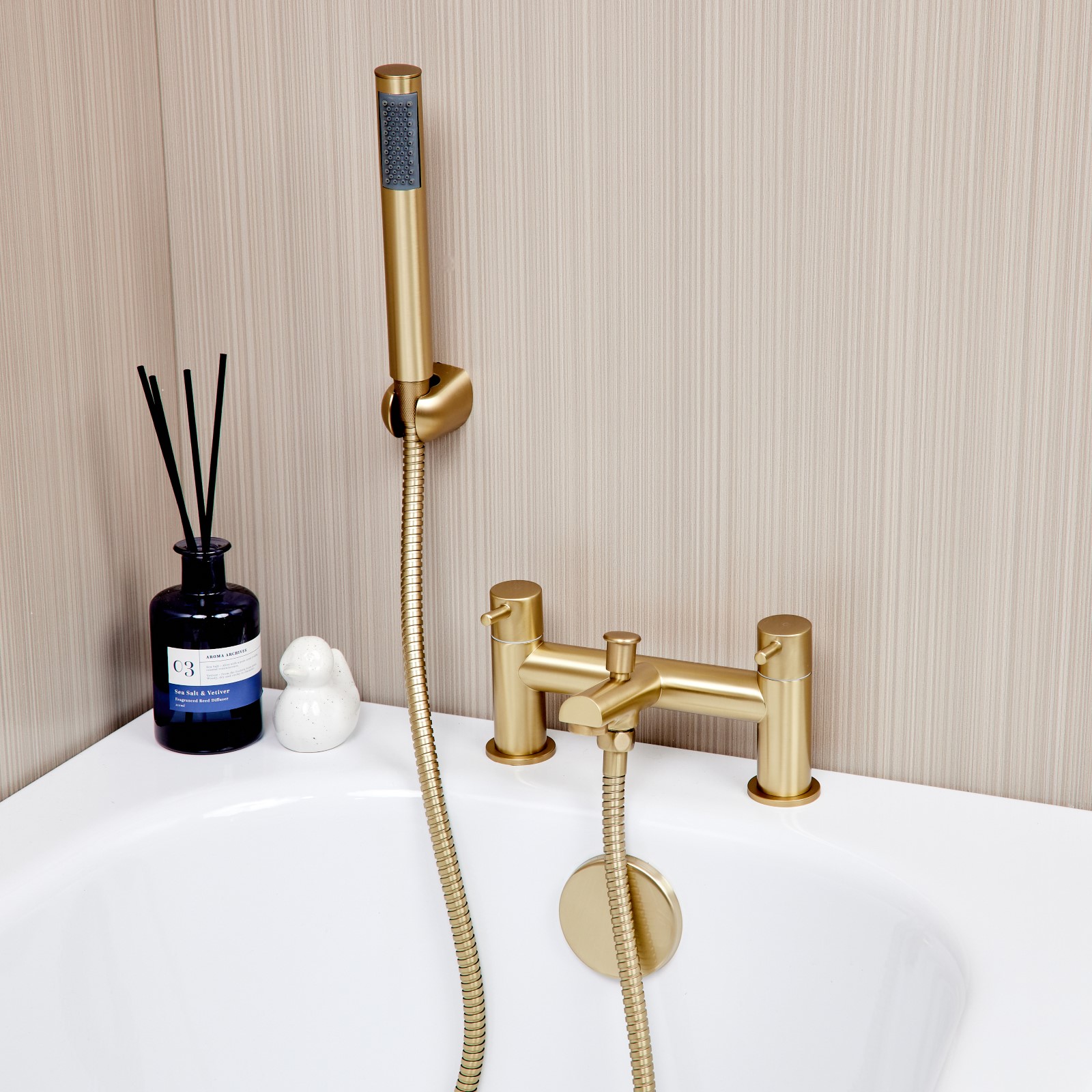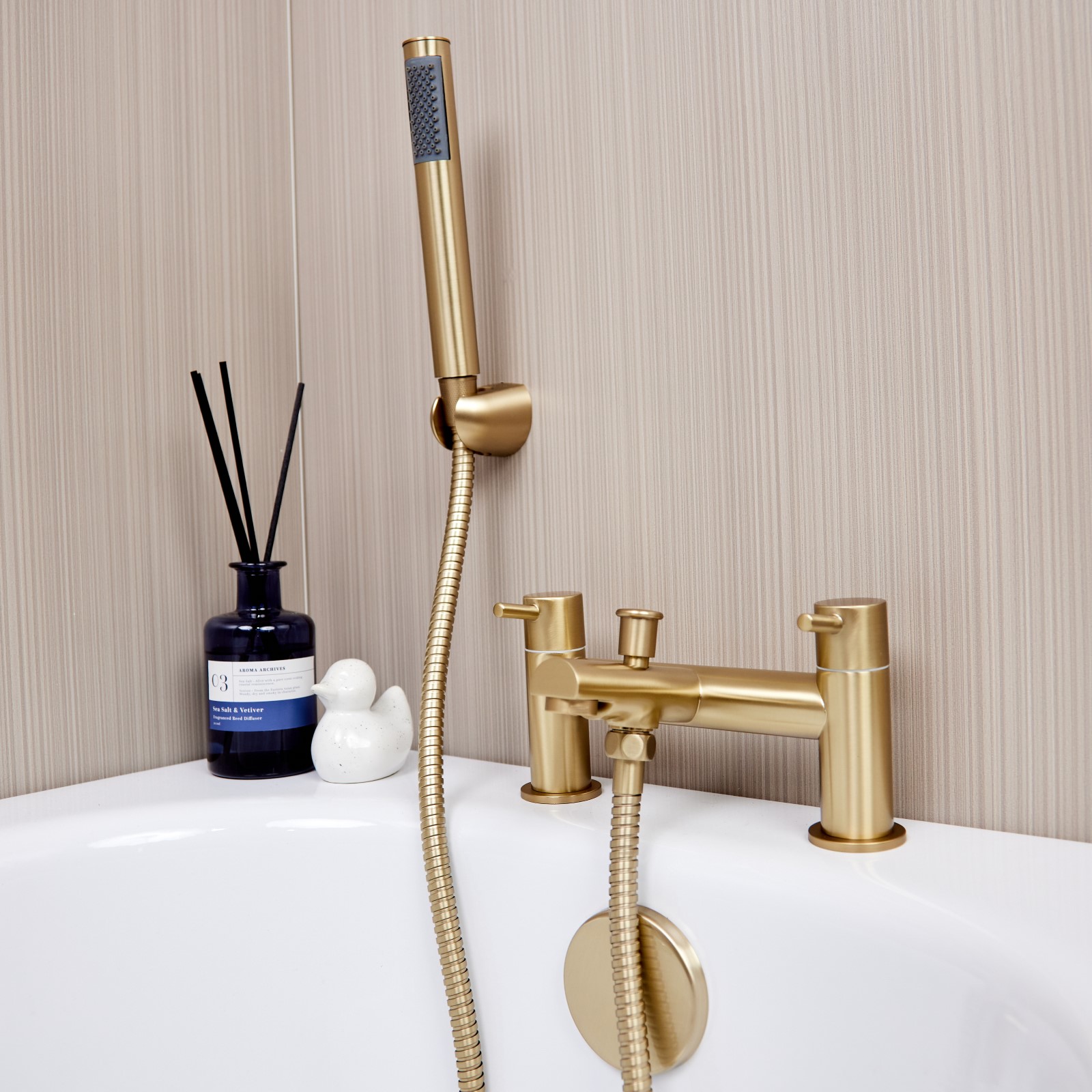 The Runn Bath Shower Mixer will add a touch of sophistication to your home. Manufactured in solid brass and finished in brushed brass, suitable for both high and low water pressure systems, complete with an on trend handset and holder.