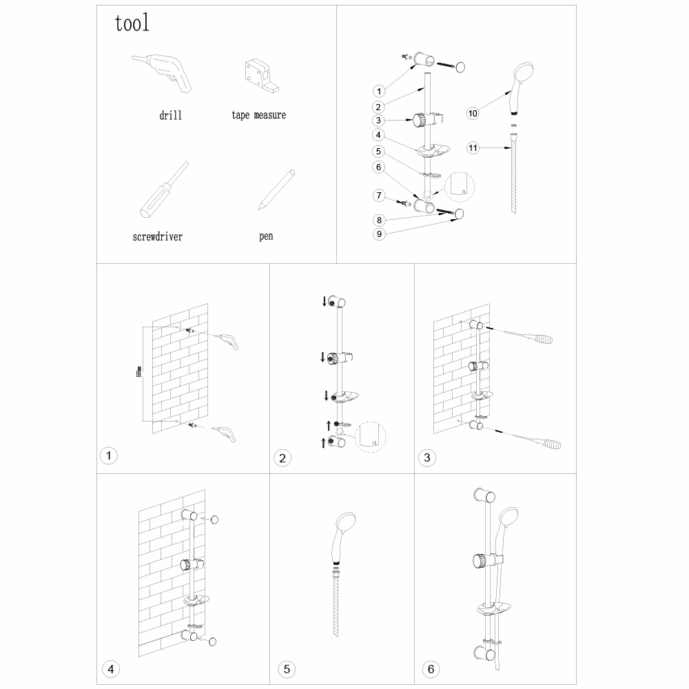 - Includes hand shower, hose, soap dish & sliding rail, providing a comprehensive showering solution.