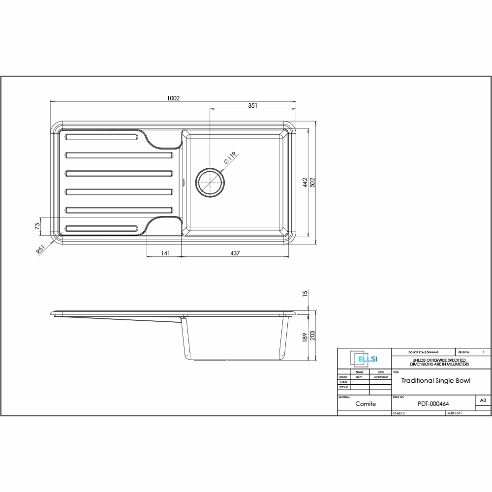 With this farmhouse style Comite kitchen sink, you can add a Traditional touch to your kitchen. It is ideal for multi-taskers and busy kitchens because it has one large, deep basin and a spacious drainer. The material is also extremely impact resistant without being so hard that it damages cups, plates, and pans. The patented material can be shaped with sharper, cleaner edges, allowing for slimmer designs and more design freedom, allowing for aesthetically appealing kitchen sinks at a lower cost.